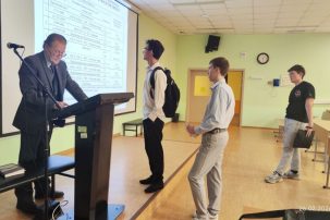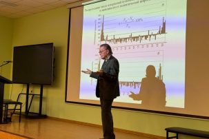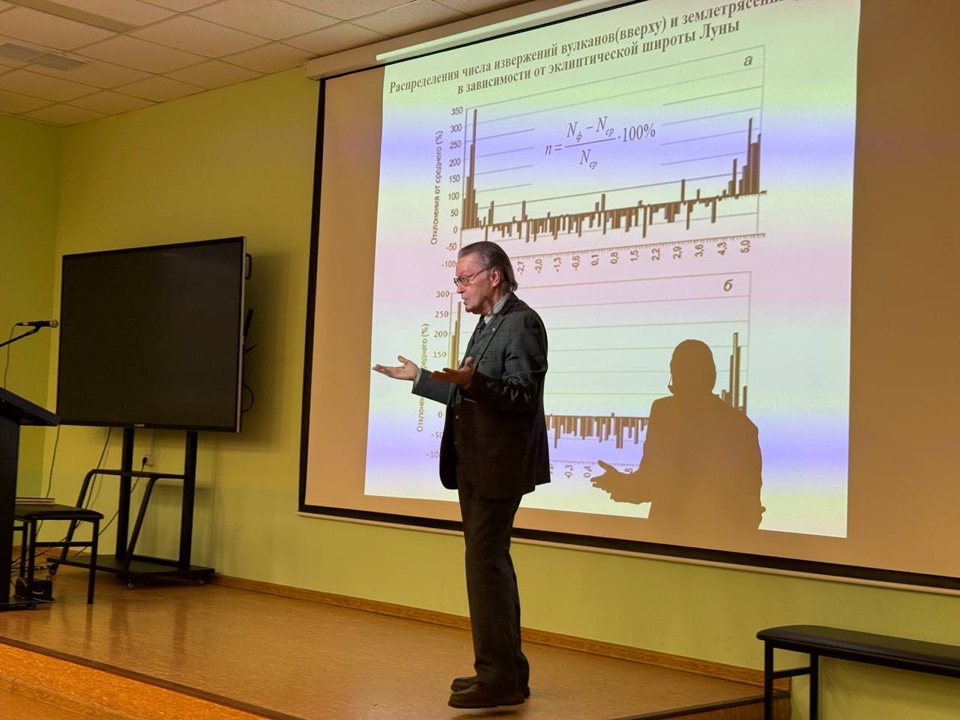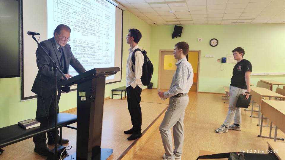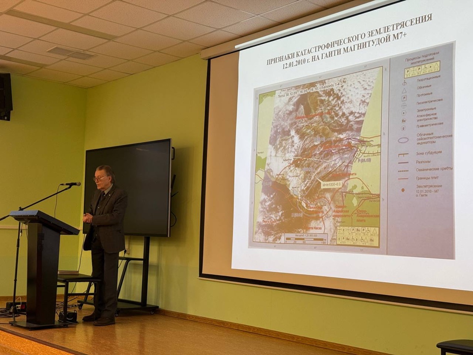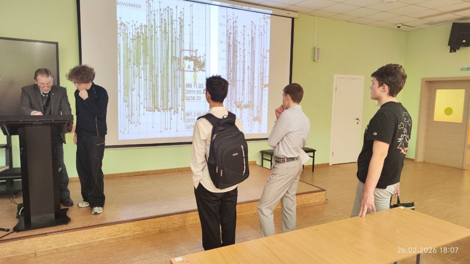 26 февраля 2026 г. для 10–11 физмат классов СУНЦ МГУ состоялась лекция кандидата физико-математических наук, доцента кафедры газовой и волновой динамики мехмата МГУ Натяганова Владимира Леонидовича «Прогноз землетрясений по облачным структурам». На ней были рассмотрены подробности краткосрочного прогноза сильных землетрясений с магнитудой по эмпирической схеме Научного центра оперативного мониторинга Земли Роскосмоса, разработанной с участием научных сотрудников МГУ. Схема позволила в ряде случаев дать ответ на главную триаду вопросов: Когда? Где? Какой силы?