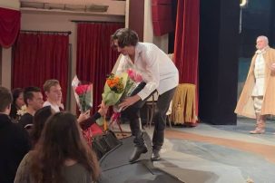 После спектакля ребята вручили артистам букеты роз за прекрасное исполнение.