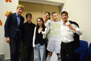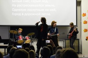 В организации концерта ребятам помог наш выпускник Максим Галкин. Лида Москвина (11В) подготовила красивую афишу.