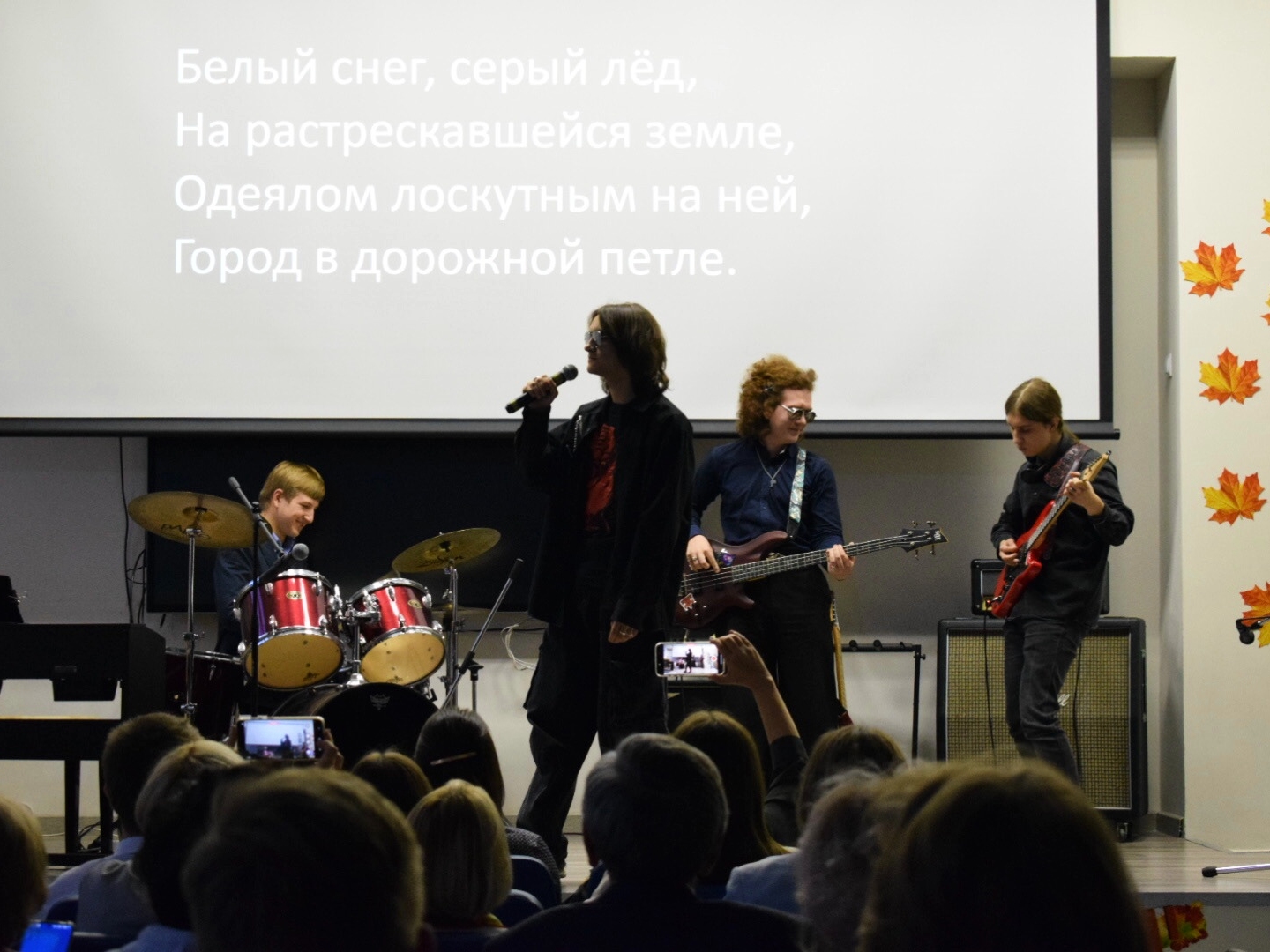 1. Игорь Лобода, Миша Бутырин (11И), Игорь Карташов (11М), Сережа Касилов (11Г) — песня «Звезда по имени Солнце» (эл/гитара, бас/гитара, барабаны, экран)